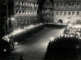 Die Saar-Siegesfeier in Schwäb. Gmünd. Die Front der Reichswehr „Angetreten zum grossen Zapfenstreich“ vor dem alten Rathaus., 1933